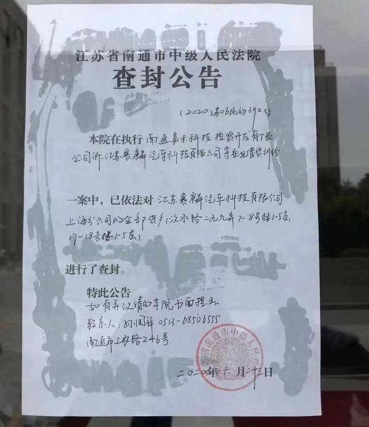 股权借贷,也是这场嫌疑骗局的核心所在。最新的消息是,赛麟汽车的两家工厂、上海分公司等已被南通中级法院查封,所涉案情正是南通嘉禾与赛麟汽车及外资股东的借贷纠纷。
