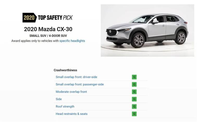 在E-NCAP测试中以接近满分的成绩获得五星,在IIHS碰撞测试中获得TOP SAFETY PICK评级,一排绿色的G,看得人赏心悦目。