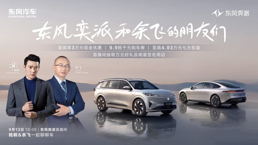 车圈大事件来啦!9 月 13 日,陆毅以东风奕派品牌挚友的身份,做客“东风奕派和余飞的朋友们”直播间,现场体验品牌双星eπ007和eπ008的产品魅力,并与东风奕派营销事业部总经理余飞一起聊车派福利,直播间9.9元下订可抵1000元购车尾款,同时可享多重购车礼遇。当优雅的国民男神陆毅遇上奕派理工男余飞,双方金句频出,更在现场合拍大片,送出陆毅签名周边及万元好礼,为用户带来金秋时节的第一场精彩直播。
