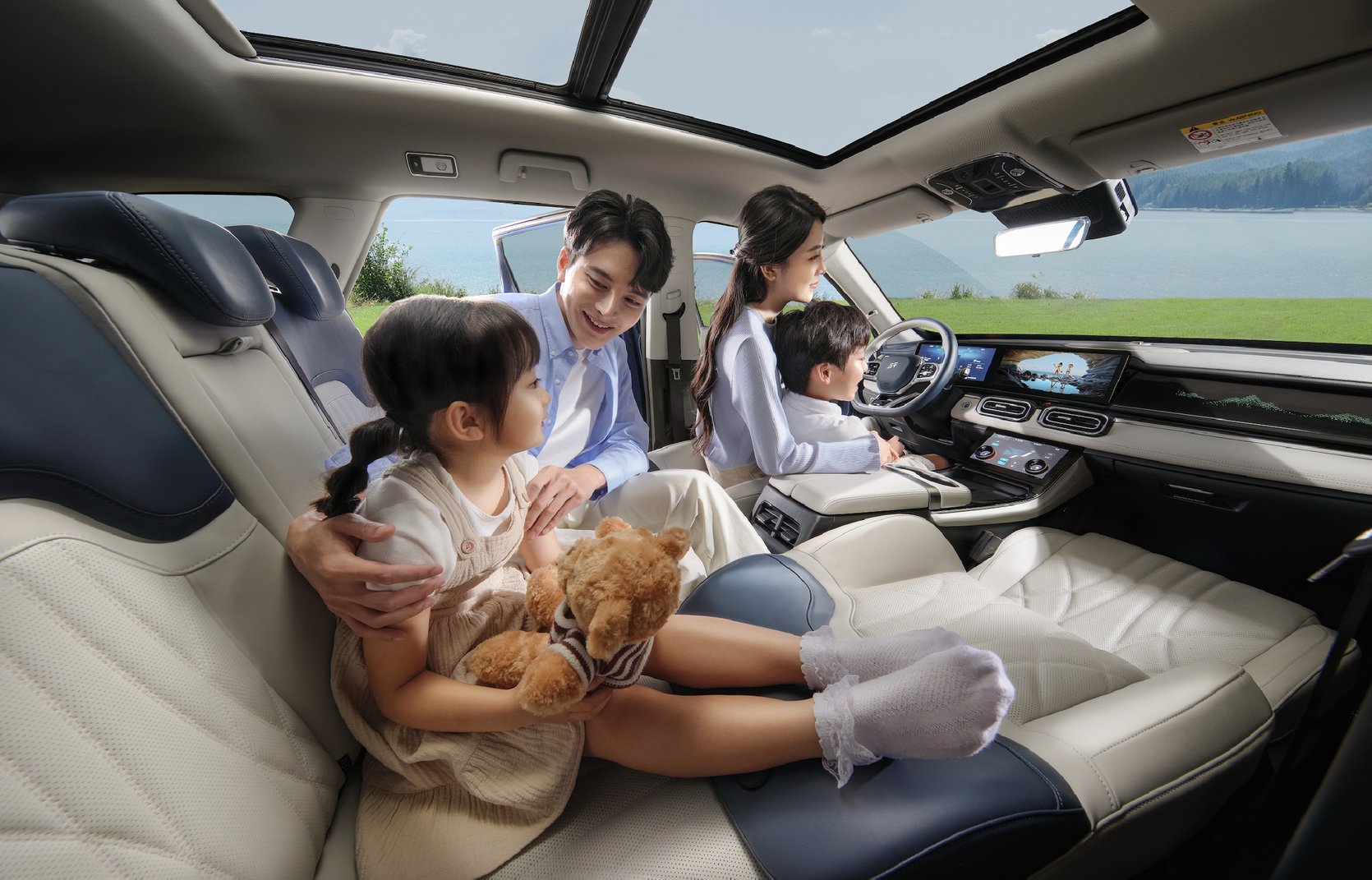 此外,捷途山海L7还将12.3英寸液晶双联屏装上车,并以全新UI系统、生态APP和全场域SONY音响,将车内空间打造成专属的移动家庭剧场,为每一位家人的出行提供沉浸式的娱乐影音体验。