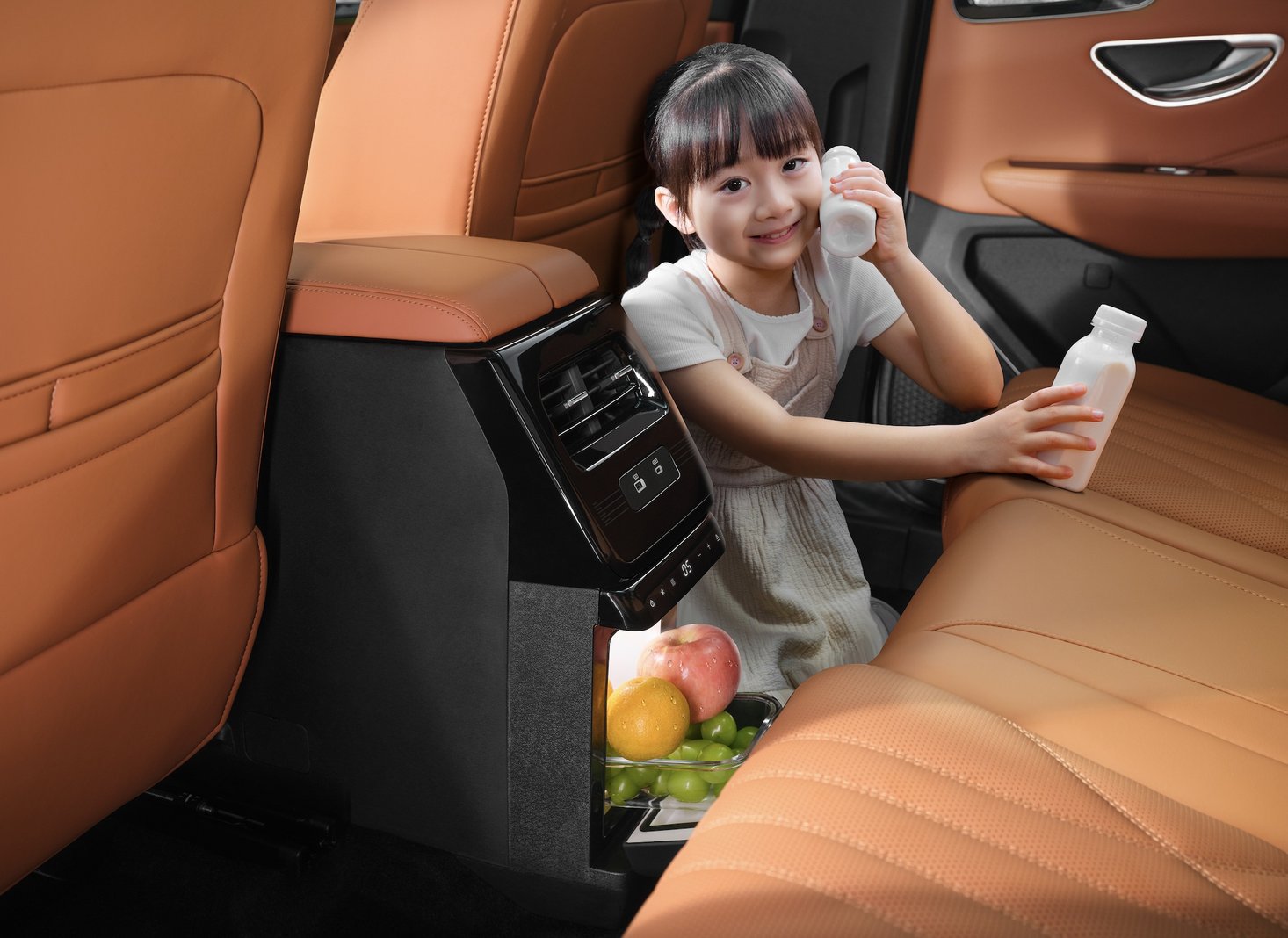 捷途山海L7其二排车载冷暖冰箱,对标行业头部,采用成本更高的压缩机技术,不仅制冷速度是半导体冰箱的五倍,更支持-6°C~50°C的超宽温控范围,以及紫外线杀菌功能,还提供冰淇淋、保鲜、温奶等6大智能模式。