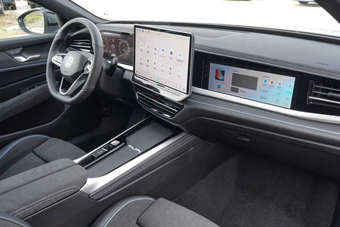座舱内配备了10.3英寸全数字液晶仪表+15英寸智能2K悬浮中控大屏+11.6英寸副驾高清娱乐屏,以及一个隐形的w-HUD抬显系统,这几块大屏不仅可联动手机,还能实现互联互通。追平了造车新势力的智能化水准,开创了B级商务车的智驾新风,尤其是副驾高清娱乐屏,在一款油车上还真鲜有人应用,这也使得帕萨特Pro的内饰拥有了浓郁的科技风。