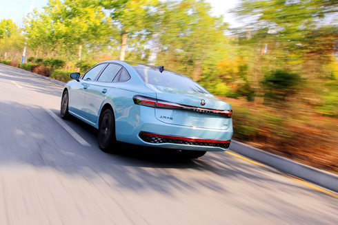 车身尾部,新车型面饱满丰富,凌光点阵式LED贯穿尾灯集成了PASSAT英文字母,看起来十分新颖,尾灯内部也进行全新设计,灯带点亮时行云流水,有着潮汐般往复的律动美。