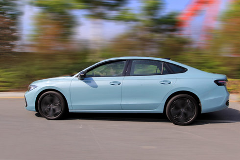 试驾中,新车在1600-4300rpm下就能输出峰值扭矩,这也使其起步表现轻快有力,毫不拖泥带水。中后段加速中,新车动力输出也很给力,几乎不需要深踩油门就能获得充沛的动力输出。官方数据显示,新车百公里加速仅需7.6秒,这个数据对于一款中型燃油车来说,表现已足够优异。