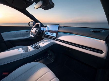 外观方面,吉利银河星舰7 EM-i整体呈现“高、大、挺、阔”的车身姿态,前脸“银河涟漪”贯穿灯和车尾“旭日东升”贯穿式尾灯相呼应,不仅提升整车辨识度,更彰显出浓郁的中华审美韵味。车身型面温润饱满,看似简单的侧面光影由9个不同曲率折面构成,气韵生动。同时,通过隐藏式雨刮器、破风低阻前唇、低风阻尾翼等全车20处低风阻设计,吉利银河星舰7 EM-i拥有比肩轿车的0.288Cd的超低风阻。