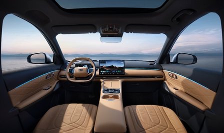 在内饰座舱上,悬浮式音响和“中国太师椅”的座椅设计,营造出极为舒适的驾乘氛围。同时,得益于GEA架构在空间里利用上的优势,吉利银河星舰7 EM-i空间宽敞,布局合理,后排乘客能享受到同级最大的头部、肩部和膝部空间。