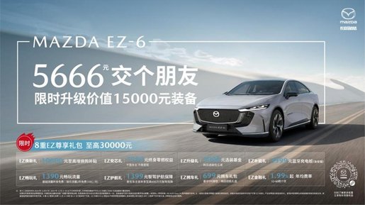 作为马自达在中国市场最强的四门轿车,MAZDA EZ-6在传承「造车如艺」、「魂动」设计、「人马一体」、顶级安全、全球品质的基础上,同时提供了中国市场用户需要的智能座舱、智能驾驶、宽适空间、中控大屏、零重力座椅等高价值配置,打破了合资新能源一直以来“油改电”的落后标签,满足合资用户对智能化与电动化的双重期待,以A级轿车的亲民价格,带来B级轿车的豪华享受。