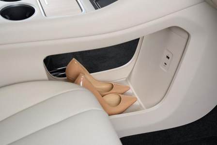 储物空间方面,智界R7更是别出心裁。前排中央扶手箱可选配8.2L的双开mini bar冷暖箱,支持3-50度的广域温控,无论是夏日的冰镇饮料还是冬日的热饮,都能随时畅享。此外,下方还设计了镂空储物格,方便放置高跟鞋等物品,让女性用户在上车后即可轻松换鞋,无需再为找鞋而烦恼。