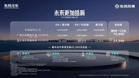 为了让更多用户能够享受到超强混动带来的独家出行体验,东风风神专门为2025款皓瀚推出了4重上市礼遇,额外享受至高45000元权益: