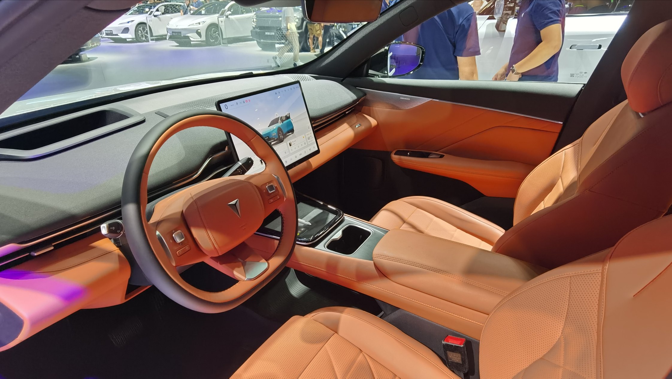 深蓝S05配备的是高通骁龙8155芯片,顶配车型采用向日葵旋转中控屏,比较新颖。