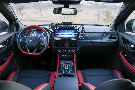 笔者驾驶的搏胜S9对驾驶最明显的改装即是门桥,使其车桥高于轮胎中心位置,大幅提升了离地间隙。普通皮卡在改装门桥后大多会出现高速行驶稳定性差等问题,但改装后的搏胜S9高速巡航依旧保持了稳定,即使是经过横风路段车身也未出现方向盘“抢把”等问题,足以体系出搏胜S9优异的底盘素质。