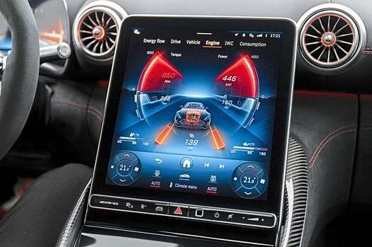 不过,这些也就是所有的缺点。所有其他差异都涉及电动机的使用。例如,可通过典型的AMG方向盘选择三种动能回收模式;在运动驾驶模式中,GT还会将部分负荷阶段利用发动机功率的几分之一来为电池充电。其效果是E Performance的额外价值始终存在,在横向动态方面更是如此,而在直线行驶中则几乎始终如一。