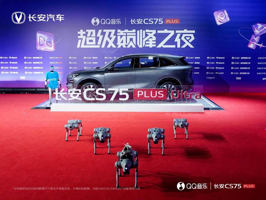 不仅在汽车市场,长安汽车全球首发的新蓝鲸500Bar高压直喷技术也在音乐界出圈了。在近日的“QQ 音乐超级巅峰之夜”,机器人和机器狗身上穿着带有长安新蓝鲸500Bar标识的服装,为长安第四代CS75PLUS打call,吸引了众多达人用户打卡、点赞。特别是机器人穿着带有长安新蓝鲸500Bar标识的服装走红毯,更成为此次QQ音乐节的一大亮点。