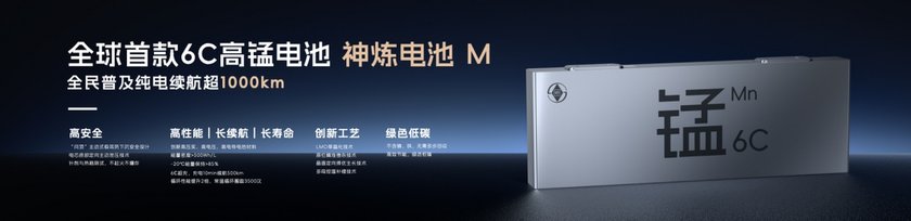 面向未来,神炼电池4.0也进化登场,将采用800V平台、CTB、智能无线BMS和AI能量管理等多项技术,并通过全新智能温控技术、3D多面立体热管理和热电分离技术实现安全再升级。同时,全球首款6C高锰电池——神炼电池M也将全面加持神炼电池4.0,7分钟即可补能50%,充电10分钟补充500km续航,续航超1000公里。