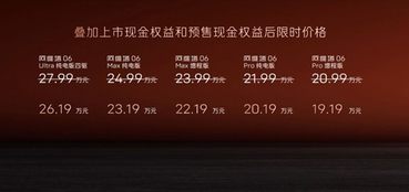 与此同时,即日起至2025年5月7日24:00,下定阿维塔06的用户可享受至高61000元的八大限时权益,包括:大定定金5,000元抵扣10000元车价,限时上市补贴10000元,价值20,000元 ADS 高阶功能包等额抵扣券,还有价值6,000元的运动套件、价值2,000元的20寸气旋五幅运动轮毂免费送,价值10,000元的25扬英国之宝·卓越之声音响系统、价值8,000元的前排智能电动门免费升级,及面向Ultra车型用户价值12,000元的超清电子外后视镜套装限时免费升级。