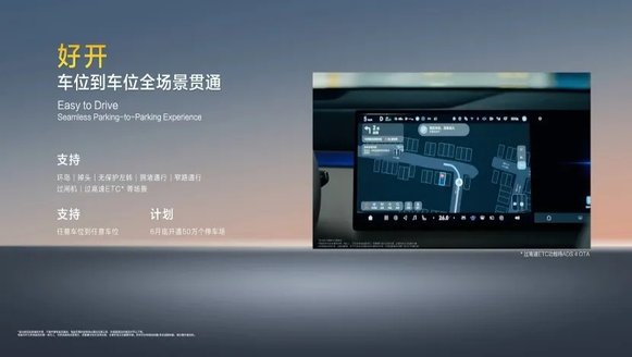 另外,新车实现了车位到车位的全场景贯通,可以畅行高速ETC,可实现跨城通勤零干预。靳玉志现场表示,今年6月底全国将开通50万个停车场,泊车代驾VPD功能,也可以使泊车无忧。同时,也将开通10万个停车场支持使用,用得省心,用得放心。