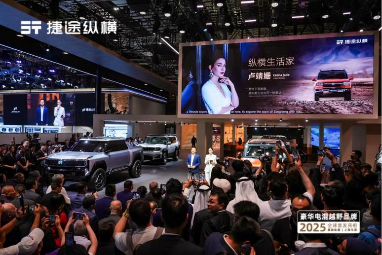 在车展现场,500余名海外经销商与媒体代表齐聚捷途纵横展台,其中不乏来自中东、拉美、东欧等越野车热销市场的合作伙伴。奇瑞控股集团董事长尹同跃宣布,纵横G700将于2025年第三季度率先登陆中东市场,售价约合人民币60万元,直指路虎卫士与丰田陆地巡洋舰的腹地。