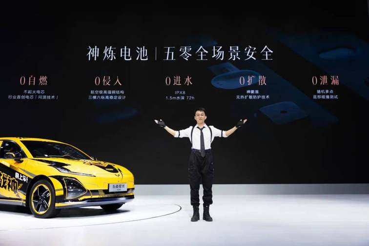 电池安全方面,五菱星光2025款纯电版搭载神炼电池,经过⾏业⾸例电芯多⾯五针刺实验与枪击测试军备级严苛实验,远超明年才实施的新标准,能确保零⾃燃、零扩散、零泄漏、零进⽔、零侵⼊五零全场景安全,极大增强了我们的用车信心。
