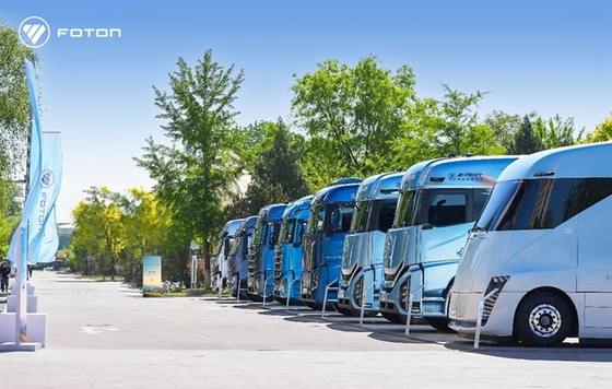 在技术减碳方面,巩海东讲到:“福田加速实现从传统制造向科技型企业的转型跨越,坚持‘纯电+混动+氢燃料’三线并举,积极布局核心自主模块和关键技术,形成独有的新能源产品技术优势”。其中,爱易科“电·驱动”实现三电系统核心模块的自主研发和自制,FHS混动技术平台在专属硬件架构层面集成40余项前沿技术,软件层面实现65项专属策略优化,可较传统燃油车节能10%以上,起步加速性能提升30%,并经过256种复杂工况场景的严格测试和长达1200万公里验证。氢燃料技术方面,已布局大功率燃料电池、燃料电池热管理技术以及高安全、高储氢密度的工程化气液氢储供系统集成等关键核心技术。自主研发的300kW氢燃料电池发动机实现"功率、效率、寿命"三重突破,发动机效率突破63%,-35℃极寒启动能力覆盖全国运营场景,质量功率密度达811W/kg。