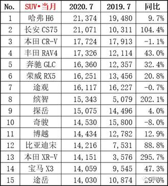 近日,由乘联会制作的7月SUV销量前十五榜单正式发布。
