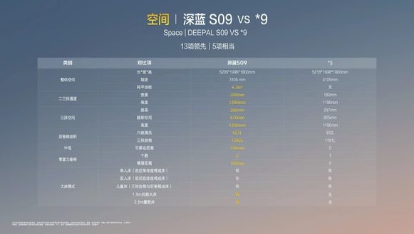 在发布会现场可以看到,深蓝S09采用“2+2+2”六座布局,车身尺寸达到5205x1996x1800mm,轴距3105mm,与理想L9、问界M9等竞品同级。超大的车内空间为用户带来了宽敞舒适的乘坐体验,“每个位置都是头等舱”的说法得到了现场观众的亲眼印证,较好地适配了商务、家庭、出行、上班等多样化场景。即使全车满员,深蓝S09拥有的360mm最佳乘坐高度、870mm三排腿部空间,能够保证“前排宽敞、二排享受、三排舒适”——“让所有的乘客都坐得舒服”。此外,深蓝S09第三排放倒容积达到1392L(含有44L暗格储物空间),相当于展开就是一张2.5米的超级大床,无论是大量的露营装备,还是多人一起旅行的愿望,均能“装得下、随时走”。
