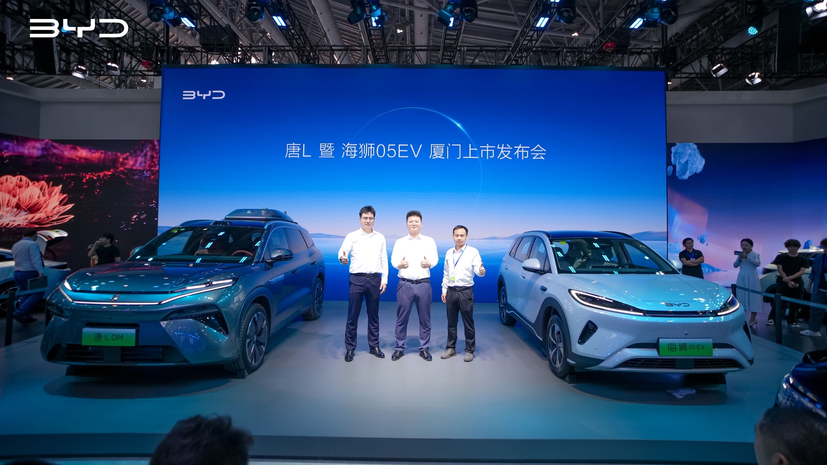 5月1日,第三届CMS厦门车展在位于翔安区的国际博览中心开幕。 当天上午,比亚迪展台共同举办了 “唐L&海狮05EV 上市发布会”,吸引了众多消费者的关注。比亚迪划时代旗舰唐L 及家用新标杆海狮05EV正式上市,全面覆盖新能源用户多样化需求。