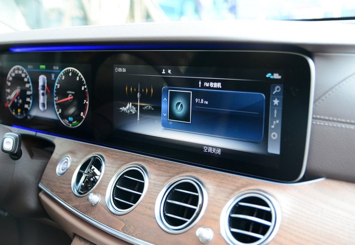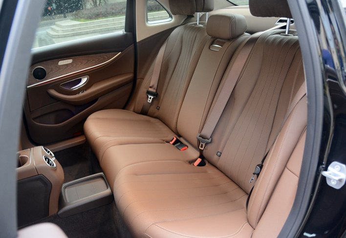另外,座椅材质是仿皮包裹,主副驾支持电动多向调节,而且还带腿托,其中座椅上还进行了打孔处理,细节上处理得不错。不过,后排座椅一直都是被吐槽的对象,虽然空间足够宽,毕竟轴距达到了3079mm,但是这个座椅设计确实有点短,与腿的接触面积小,让人坐起来确实有点稍微差,这一点可能是奔驰E级流失了不少客户的原因。不在空间方面,奔驰E级表现还不错,其中1.82米的体验者,前排调至最低,头部距离还剩一拳左右,后排头部空间还剩3指左右,其中腿部空间超过2拳有余;不过后排坐三个人的话,倒是有些牵强,毕竟中央凸起确实高,非常的不合适短途应急的话还是可以接受。