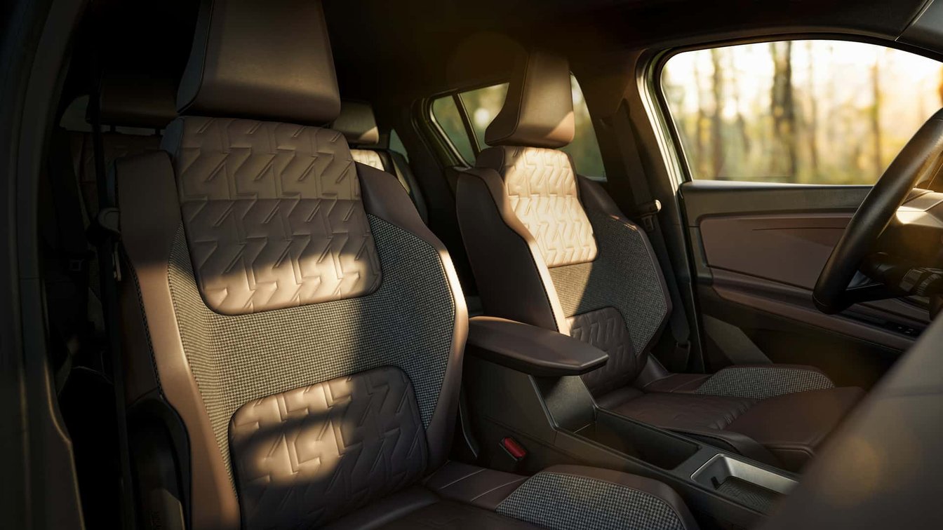 内饰方面,雷诺4 Savane采用了非对称式中控台设计,中央T字区域有向驾驶者一侧倾斜设计。驾驶者面前的仪表屏与中控台娱乐屏为双联屏设计,副驾驶面前有可发光的“4 Savane”字样。