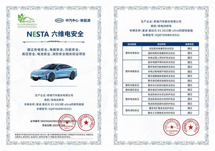 新能源汽车时代,安全是用户最为关切的核心议题,而电安全更是重中之重。凭借获得行业首个新能源汽车电安全NESTA认证,全新 2025 款星纪元ES纯电构建起覆盖充电、电磁、高压部件功能、高压、电池、防火六大关键维度的全方位、高标准防护体系。在充电安全上,适配全球超过110种主流TOP充电桩,并通过200+严苛充电测试;在电磁安全上可达到母婴级别,辐射值低于限制3dB,仅相当于约1.5个手机的当量;在高压安全上,具有11类动力域防护并经受45个典型场景工况的严格验证;在电池安全上,采用5大串行场景,2ms即断电;在防火安全上,车内PM2.5值仅为行业标准1/10,一氧化碳浓度120ppm仅为行业标准1/5,特别是可以做到整车级电池包针刺不起火,以硬核实力树立电安全新标杆。