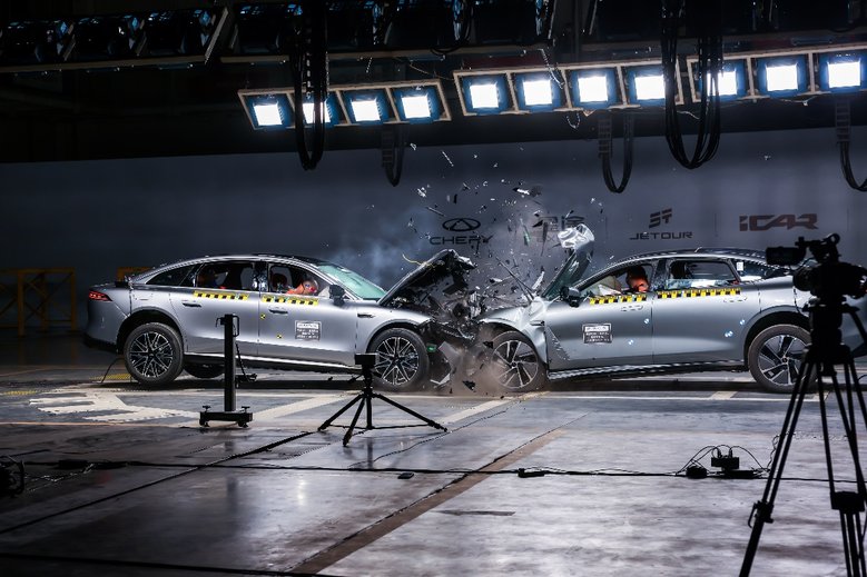 2024 年7月,星纪元ES联合中汽中心完成业内罕见的120km/h超高速三车夹击对撞,结果显示车辆乘员生存空间充足、关键结构件未失效,假人伤害值远低于限值,用户关注的电池包更实现极端碰撞下的零热失控,无位移、无泄漏、不起火、不爆炸。今年5 月 13 日在奇瑞“安全之夜”上,星纪元ES与风云A9L以120km/h相对速度进行无缓冲巅峰对碰,再次印证卓越车身结构在极端碰撞下的出色乘员保护能力,诠释了“安全是豪华的底色,心安之处方为奢”的理念。
