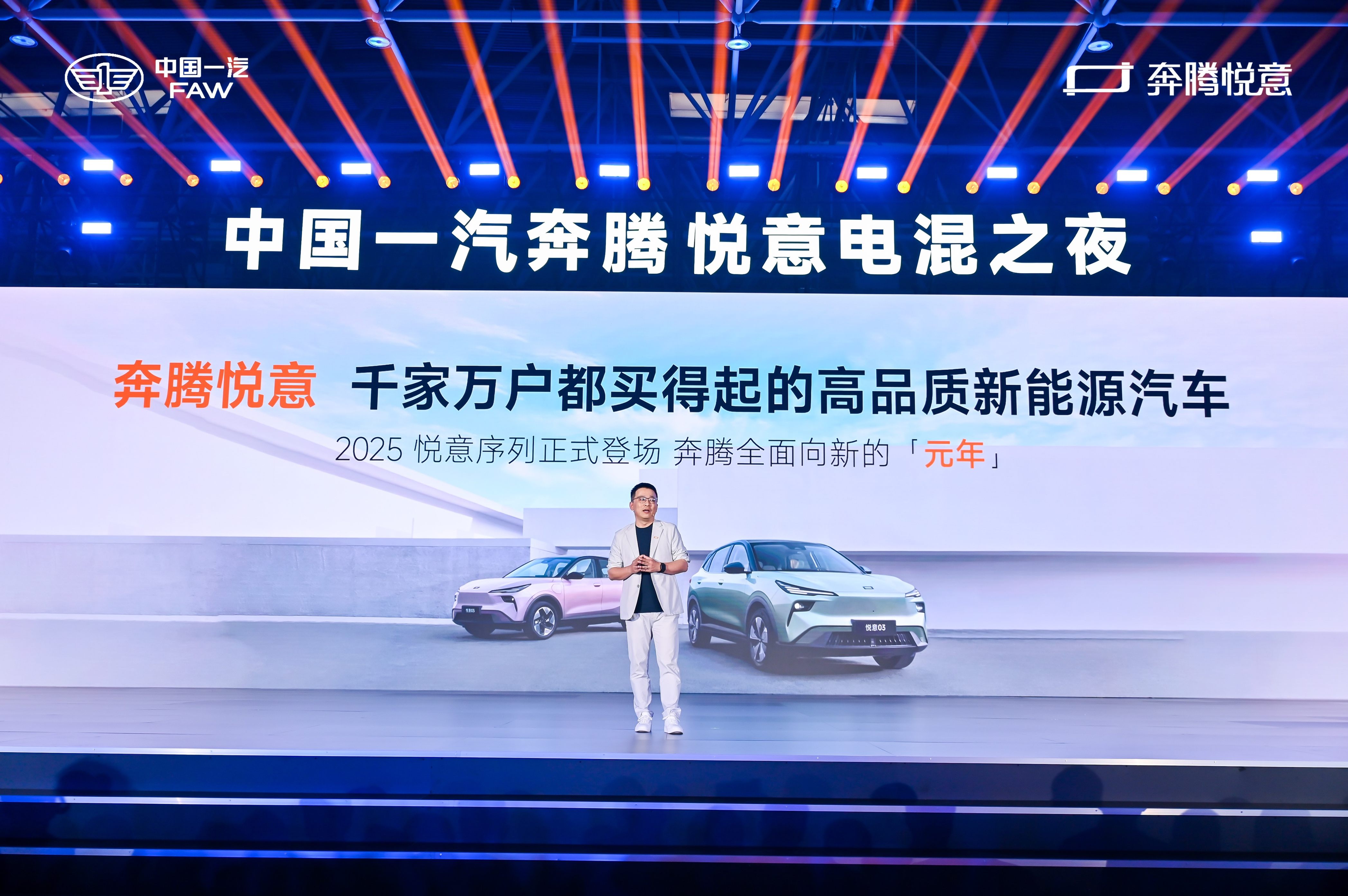 当中国一汽以9.98万元的起售价推出中型电混SUV奔腾悦意07时,这不仅是价格战中的一记重拳,更是一场关于新能源技术普惠化与家庭出行场景重构的深刻变革。在2025年这个新能源市场格局初定的节点,这款车以“超大大大”为核心理念,从技术突破、空间设计到用户价值,重新定义了家用车的可能性。5月26日,“生活从此 日新悦意——中国一汽奔腾悦意电混之夜暨奔腾悦意07全球上市”发布会盛大召开,中国一汽逐日动力BMP超级电混首款力作、超大大大电混SUV——奔腾悦意07正式发布。