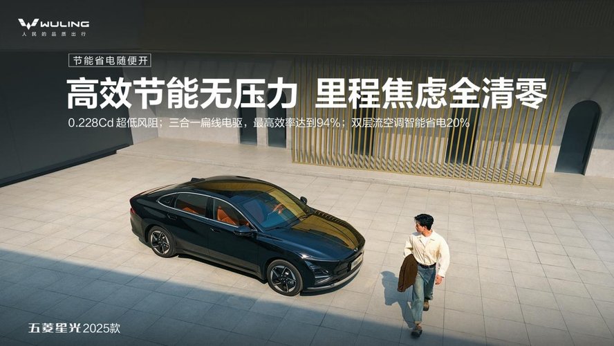 此外,新车还配备了优异的能量管理措施。就纯电车型而言,包括0.228Cd超低风阻、三合一扁线电驱最高效率达94%、双层流空调智能省电20%和40%能量回收的One-box系统,确保了能量的高效利用与回收。在权威媒体大家车智能车研究所的实测中,五菱星光2025款纯电车型以92%的CLTC续航达成率位列10-20万级国产纯电轿车榜首。针对插混车型,其采用的五合一高效电驱,电机最高效率97.4%,发动机平台热效率最高达43.2%,实现动力与能耗的完美平衡。