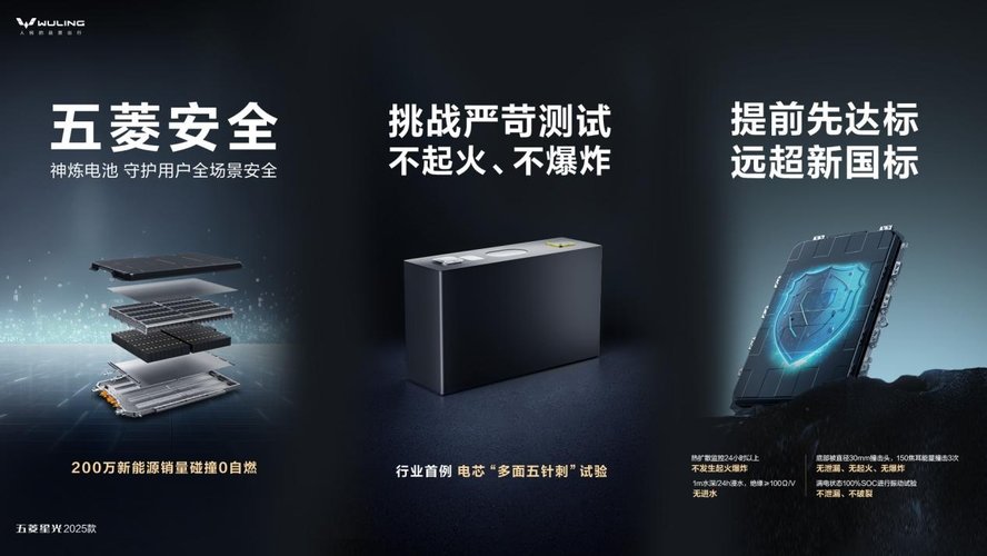 在新能源汽车安全问题频发的当下,五菱星光 2025 款以 “安全不分等级” 的理念,全系标配200万新能源销量碰撞0自燃的五菱神炼电池,以超国标、超行标的安全品质,守护用户全场景安全。