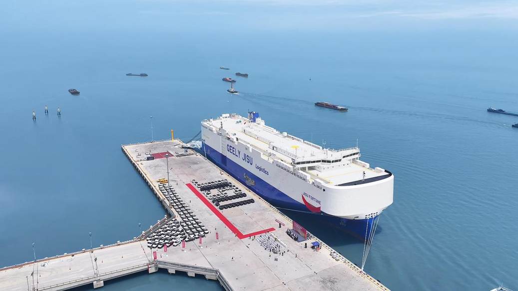 进一步强化全球物流网络,5月22日, 吉利汽车首艘滚装船 “吉速财富号”(JISU FORTUNE)在太仓港正式投入运行。它搭载吉利汽车集团旗下产品在内的5000余辆汽车,将跨越万里驶往英国、荷兰、比利时等国家。