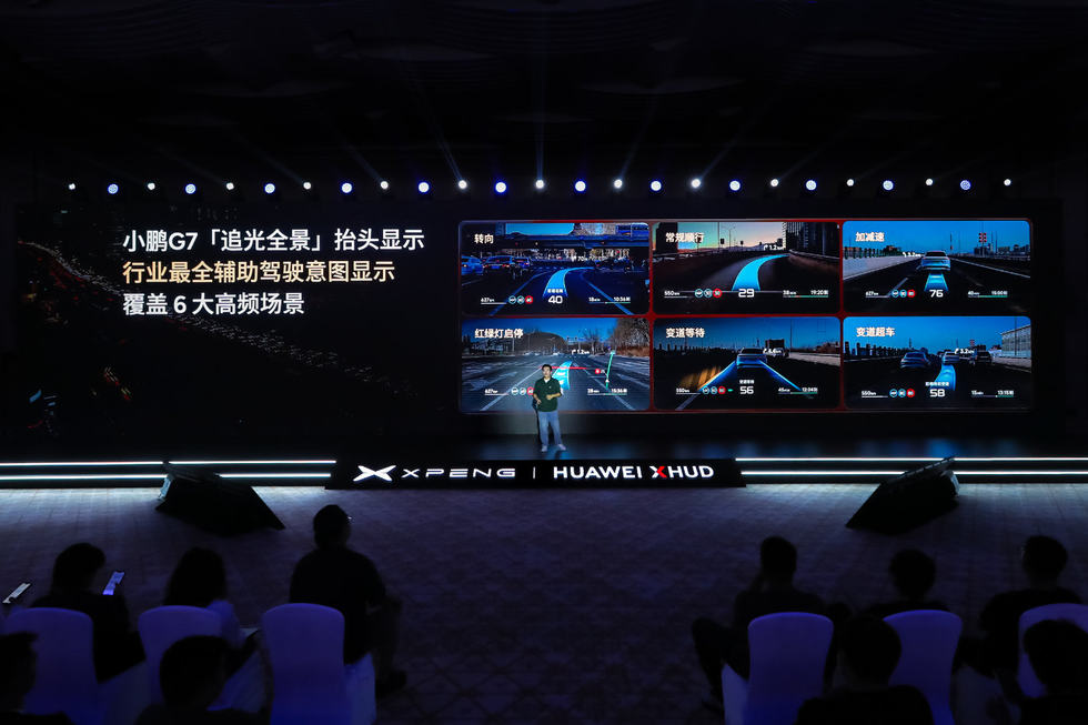 小鹏联合华为研发的AR-HUD,让前挡风玻璃化身“智能第一屏”,用户看得更清楚,智驾更安全。华为智能汽车解决方案BU智能车载光领域总经理陈双宝认为,基于华为领先的光学根技术,结合小鹏创新的AR场景和应用的HUAWEIXHUD解决方案,一定会为小鹏用户带来极致的驾乘体验。值得一提的是,即将亮相的小鹏年度首款全新车型——小鹏G7,成为小鹏汽车首搭AR-HUD的量产车型,将为用户带来前所未有的AI智能驾驶体验。