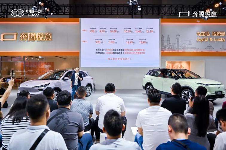 6月7日,2025重庆国际汽车展览会在悦来国际博览中心盛大启幕,一汽奔腾携全系新能源产品矩阵重磅亮相。以“生活从此 日新悦意”为主题,悦意03与悦意07组成的“悦意双子星”在西南大区正式上市发布,起售价分别为7.98万和9.98万 ,“纯电+电混”双轨布局精准响应当地用户全场景需求,带来高品质新能源出行新选择。