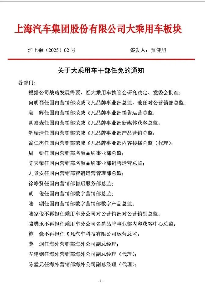 据不完全统计,自2025 年 2 月 12 日起,上汽集团对乘用车业务板块的中高层管理团队进行了全面重组,涉及超过 60 个职位,调整重点涉及销售、市场、品牌和网络发展等多个核心部门。