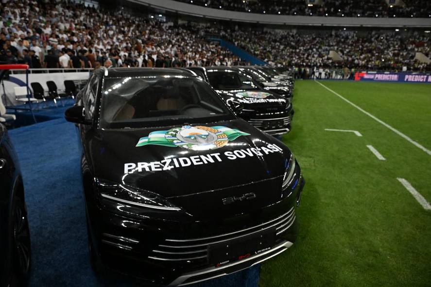 乌兹别克斯坦总统向乌兹别克斯坦国家足球队赠送比亚迪汽车