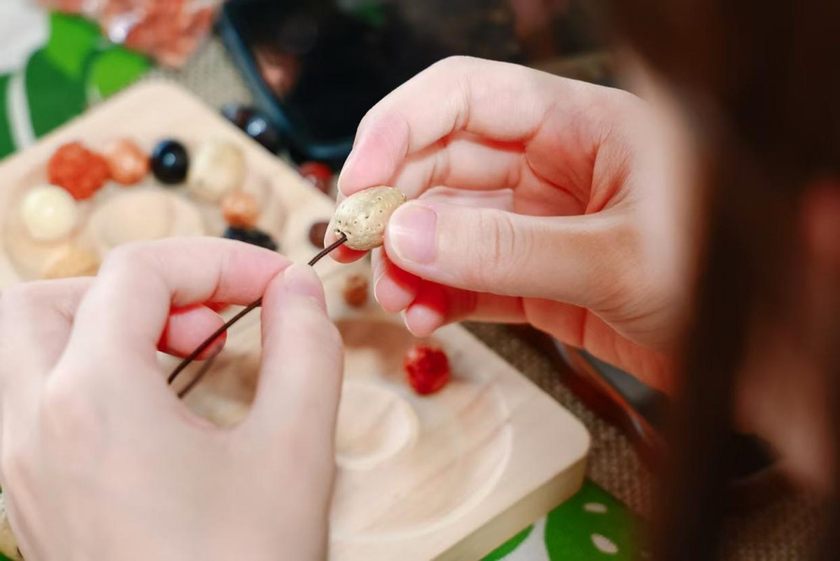 现场还特别设置了父亲节主题的国风手串DIY体验,嘉宾们亲手制作木质手串,感受中式美学文化,将这份特别的礼物带回家。