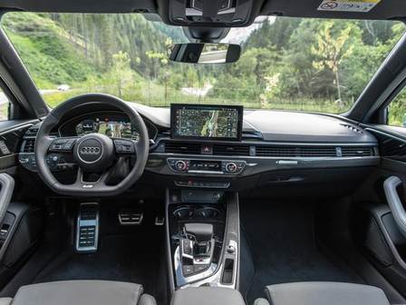 全新奥迪A5 Sportback的内饰部分并没有采用奥迪旗下最新的三联屏设计,而是在现款的基础上进行了一些调整,包括换装了全新12.3英寸全液晶仪表和10.1英寸MMI可触控的中控屏,以及搭载最新的互联车机系统,由于中控屏支持触控,所以原先MMI控制区域变为了储物空间。