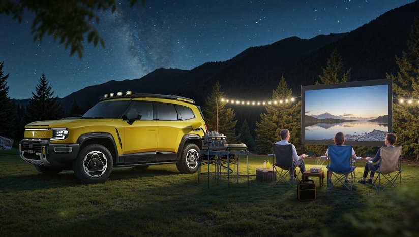 作为中大型SUV,深蓝G318以5125mm车长与2880mm轴距构建"大五座"空间,后备厢容积818L,扩展后1747L,配合侧开式尾门与220V电源接口,满足露营、摄影等场景需求。