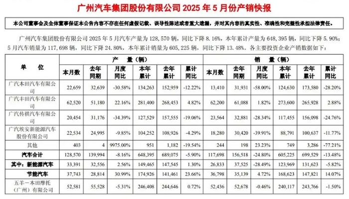 根据广汽集团公开的5月份产销快报显示,今年1-5月广汽本田累计销量124630台,同比下滑28.2%,其中,5月销量13410台,同比下滑58%。无论是5月销量还是前五个月累计销量,广汽本田都不足隔壁广汽丰田的二分之一。
