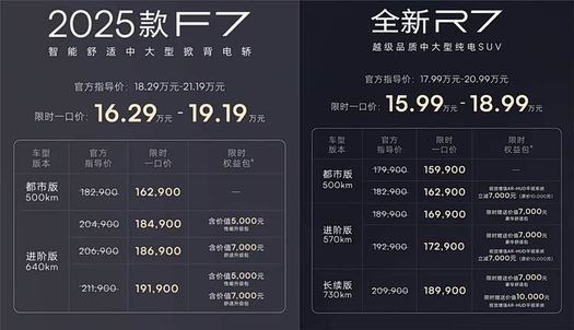 价格下探到16万级别,2025款飞凡F7/R7要背水一战