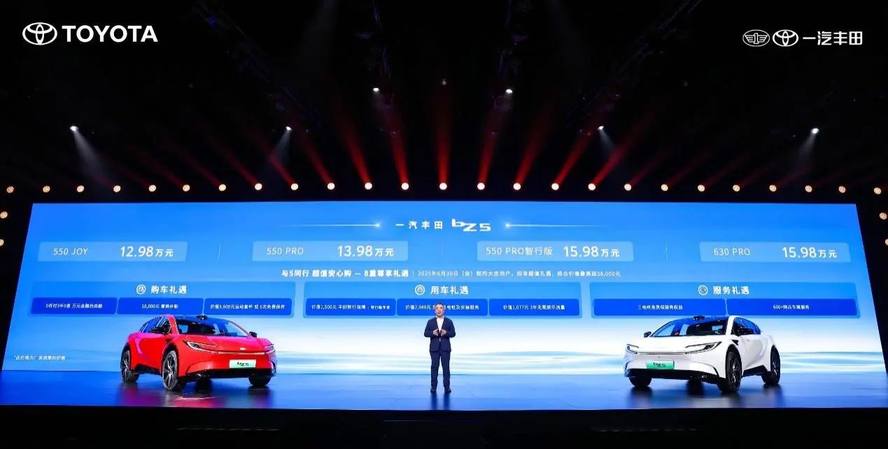 全新bZ5定位“丰田超感时空舱”,首推550 JOY版、550 PRO版、550 PRO智行版、630 PRO版共计4个版本,官方售价分别为12.98万元、13.98万元、15.98万元、15.98万元;并提供综合价值最高达3.8万元的8重大礼;上市至今,订单火爆,展露了爆款的潜质。