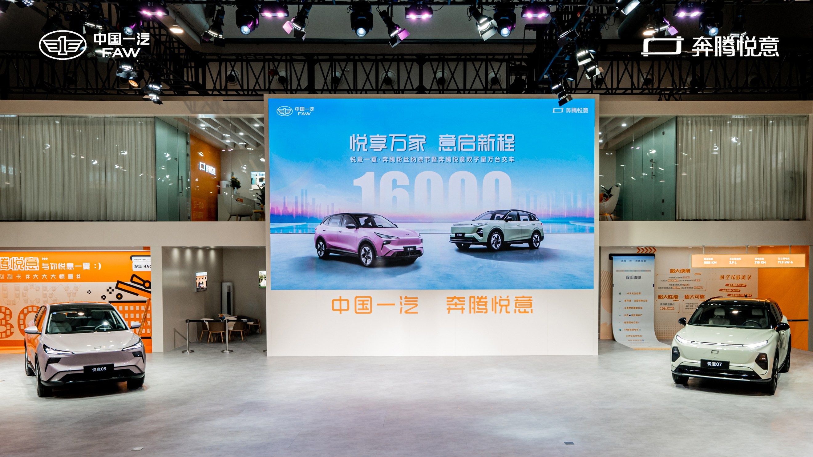 最近长春车展可热闹了,一汽奔腾整了个大场面——"悦意一夏"粉丝纳凉节,还顺便给悦意双子星的第16001到16006位车主交了车。光听这数字就惊了,这对"双子星"才上市3个月,就卖了1.6万多辆,这热度确实有点东西。