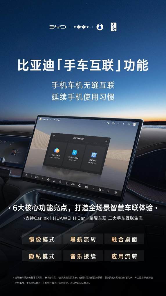 2025年7月15日,比亚迪全品牌上线「手车互联」功能,携手华为、OPPO、小米等所有主流国产手机品牌,直接打破手车互联的品牌壁垒!