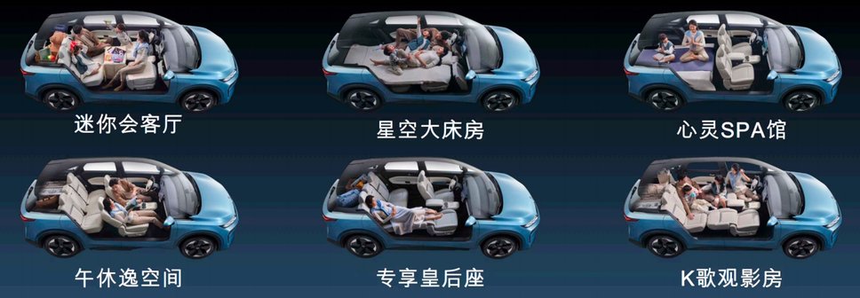 标志性的魔方座椅系统可一键切换6大场景,其中,“星空大床房”支持前排支持180°全平放倒,后排具备可下沉式调节,瞬间解锁2.5米×1.5米星空大床房,一键启动睡眠模式后,氛围音频、画面、香氛及空调、灯光会自动调节,给全家带来舒适、放松的睡眠体验;“午休逸空间”直接使副驾秒变“懒人沙发”,小憩模式下,还能联动氛围音频,闹钟,空调及门窗锁定,让人在通勤间隙也能高效回能;“专享皇后座”进一步提升乘坐尊享感,通过放倒副驾,将前后座椅连成一体,可以提供双腿放平的舒适坐姿,爱人忙完一天的工作后,可以在回家的路上尽情舒展身心,扫清疲劳。