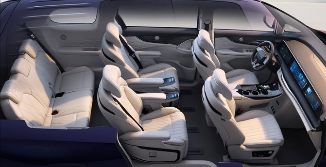既然是头等舱,自然也要亮出相对应的豪华配置,我们就拿该车的座椅来说,与其他同品类燃油MPV不同的是,星海V9的前后排座椅,不仅均支持电动调节、加热、按摩和通风功能,后排独立座椅还支持前后左右四向滑动,并配备有独立小桌板,二排座椅之间的过道宽度更是达到200mm,这也就意味着整车座舱既能根据需求自由变化,又能让二三排乘客在需要照顾老人孩子时实现自由穿梭,这可比飞机头等舱要豪华舒适多了!