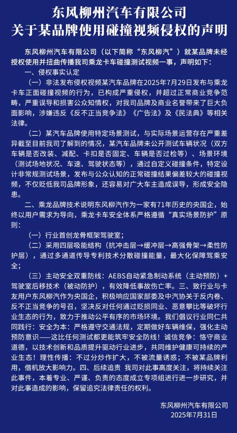 碰撞风暴!东风柳汽71年金字招牌怒撞偏见,宣告商乘安全无贵贱!