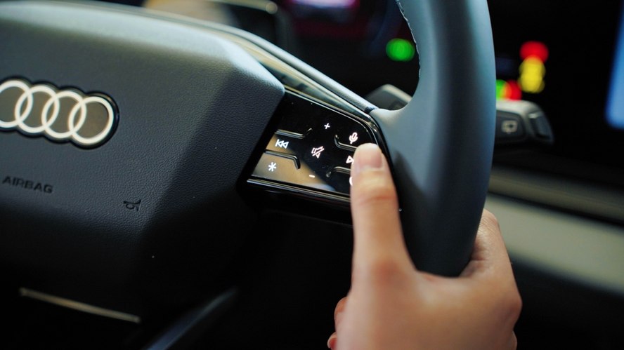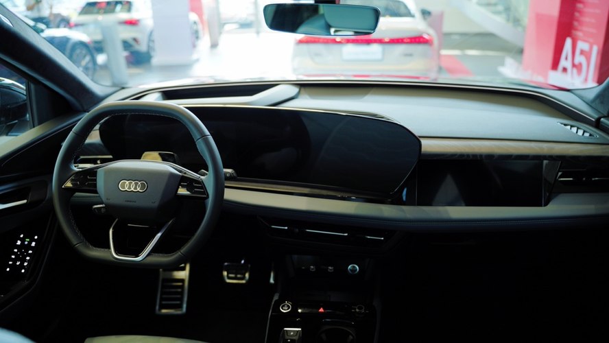 坐进驾驶舱的瞬间,更觉得这不是印象里的奥迪了,双OLED曲面屏如展开的科技画卷,带来IMAX级别的即视感,手指划过去的时候,信息流动得特别丝滑,完全没有传统屏幕的生硬感。88英寸的AR-HUD直接把导航信息投在前挡风上,在给驾驶者营造科技氛围的同时,还带来便捷安全的驾驶体验。10.9英寸副驾娱乐屏屏,也没有忘记对其他乘客的关怀。